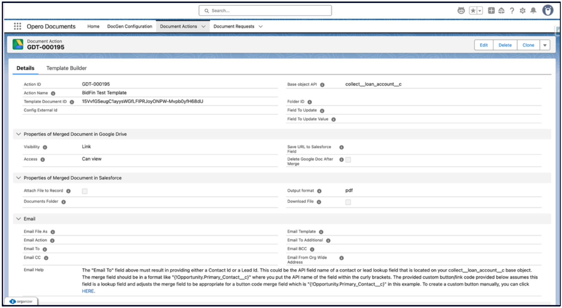 - Open the Document Action Record. And go to the Template Builder. You will be able to view the document with the branding information.