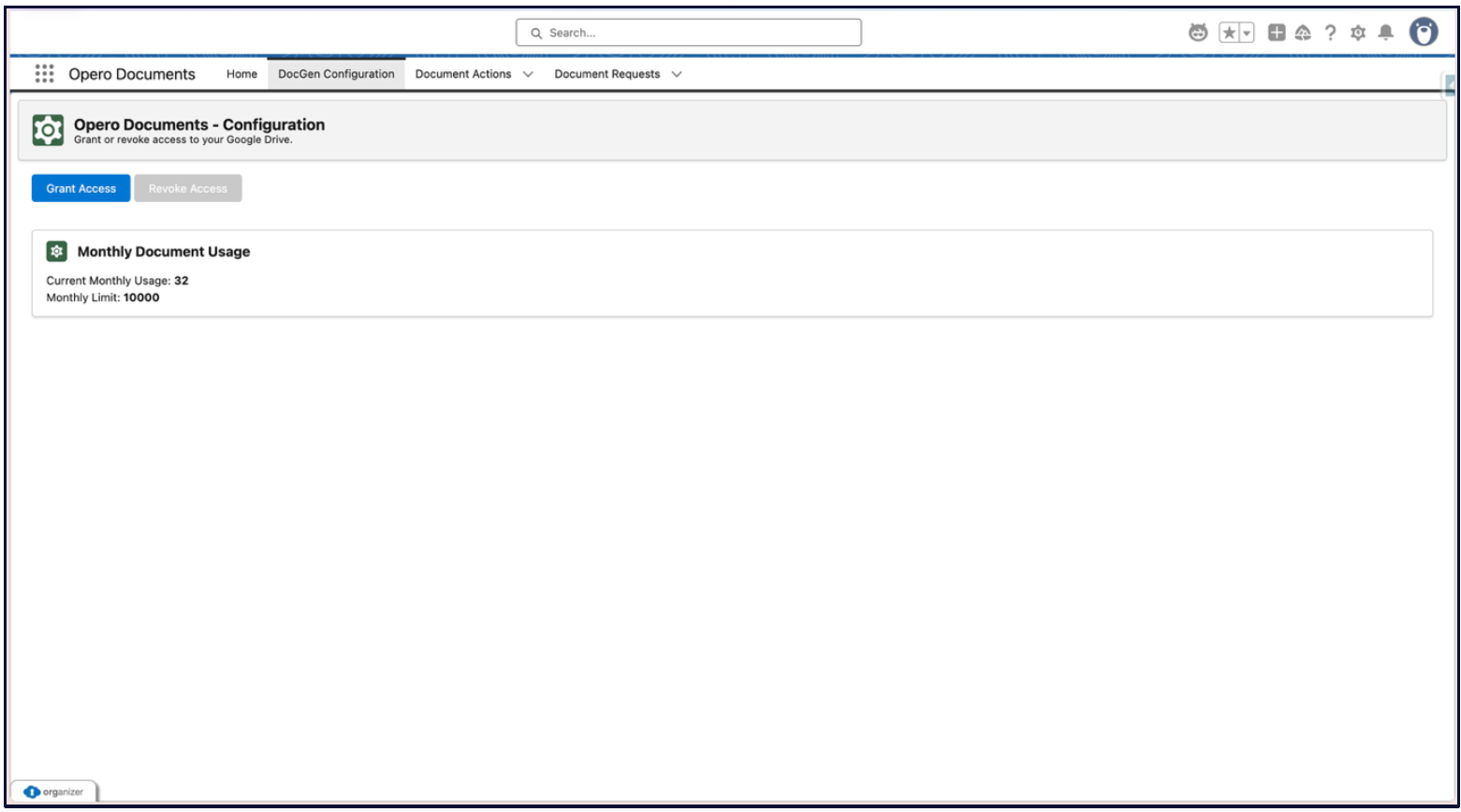 - Go to 'DocGen Configuration' and click on 'Grant Access'