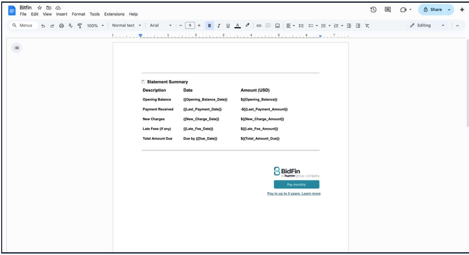 In order for you to generate a call-to-action on your invoices for your partners when using SalesForce Integrations, you can follow these easy instructions to create a BidFin Invoice Template.